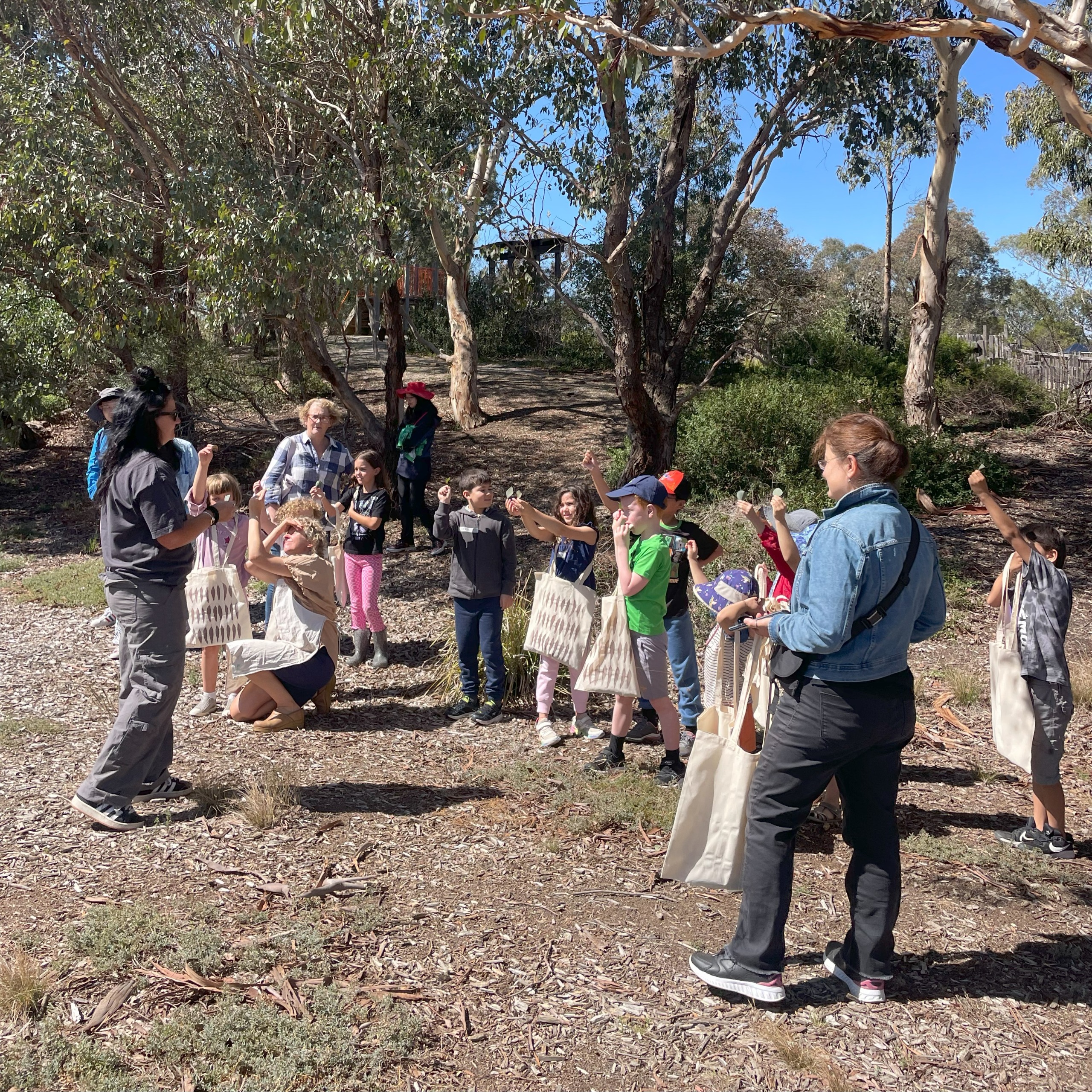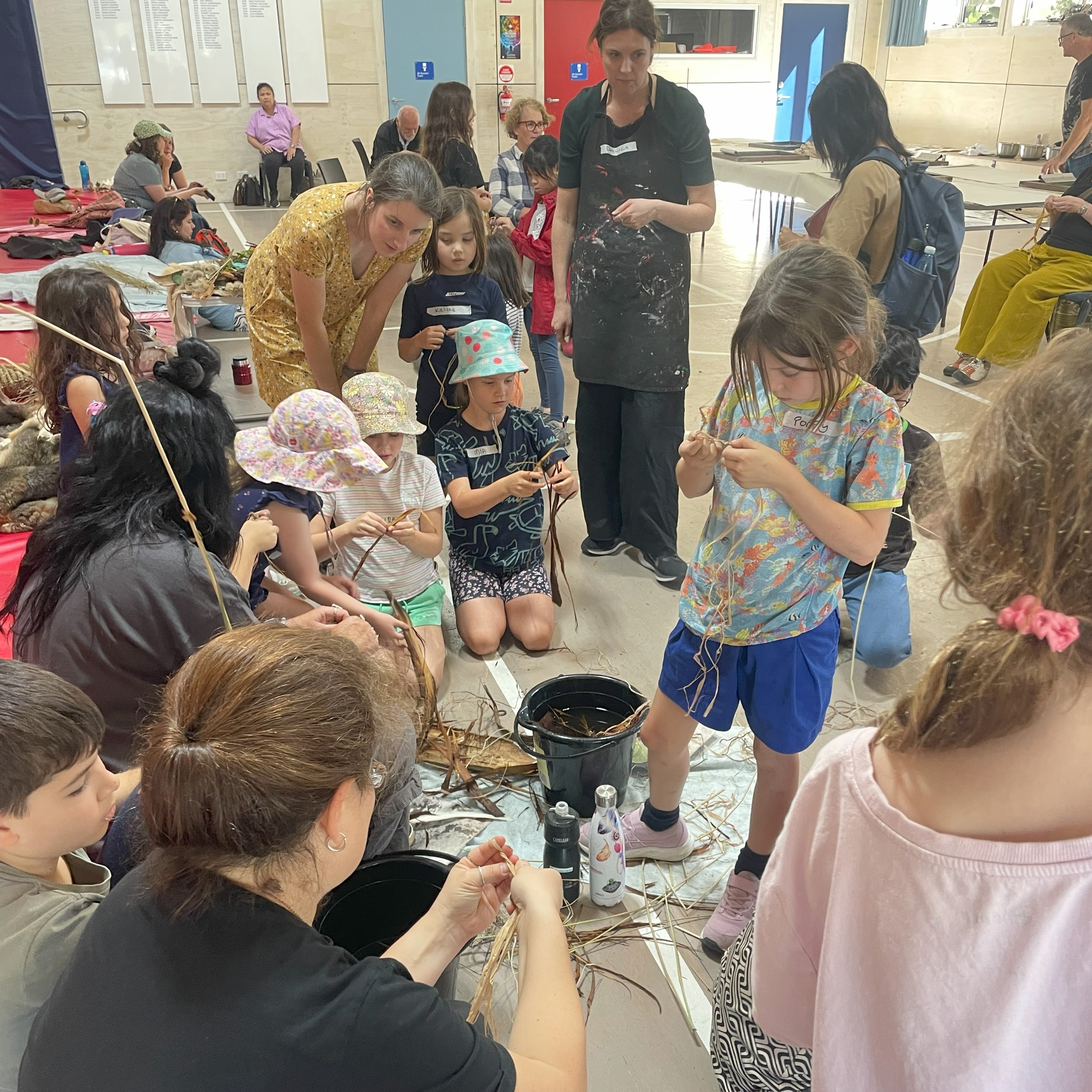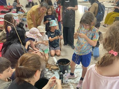 A series of activities included a site walk, storytelling and the collection of natural materials to produce drawings, brushes and paintings, screen printing and guided weaving activities. The children foraged from the surrounding native trees, plants and grasses. Samples collected included - manna gum, round leaf box gum, kangaroo grass, lomandra, spear grass, bulrush, blackwood seed pods and she-oak.
